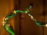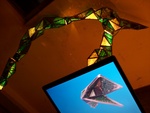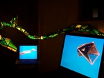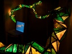 Het betreft een installatie met 2 computerschermen, videoprojectie, sculptuur uit gerecycleerde printplaten in lood gezet (glas in lood techniek), licht en geluid.